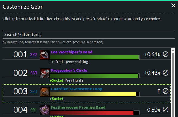 In the end I don’t think you would be able to tell which ring is better in-game. You could exclude the lower item level ring if you would prefer to use the higher item level ring. Your overall score will go down by like 0.1%, but that is so small it is anyone’s guess whether that would matter in-game.