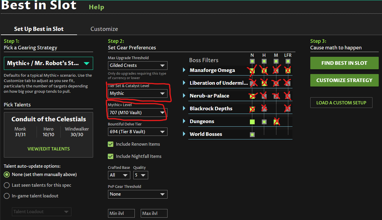 Then BiS is going to propose to you mostly crafted item or delves items