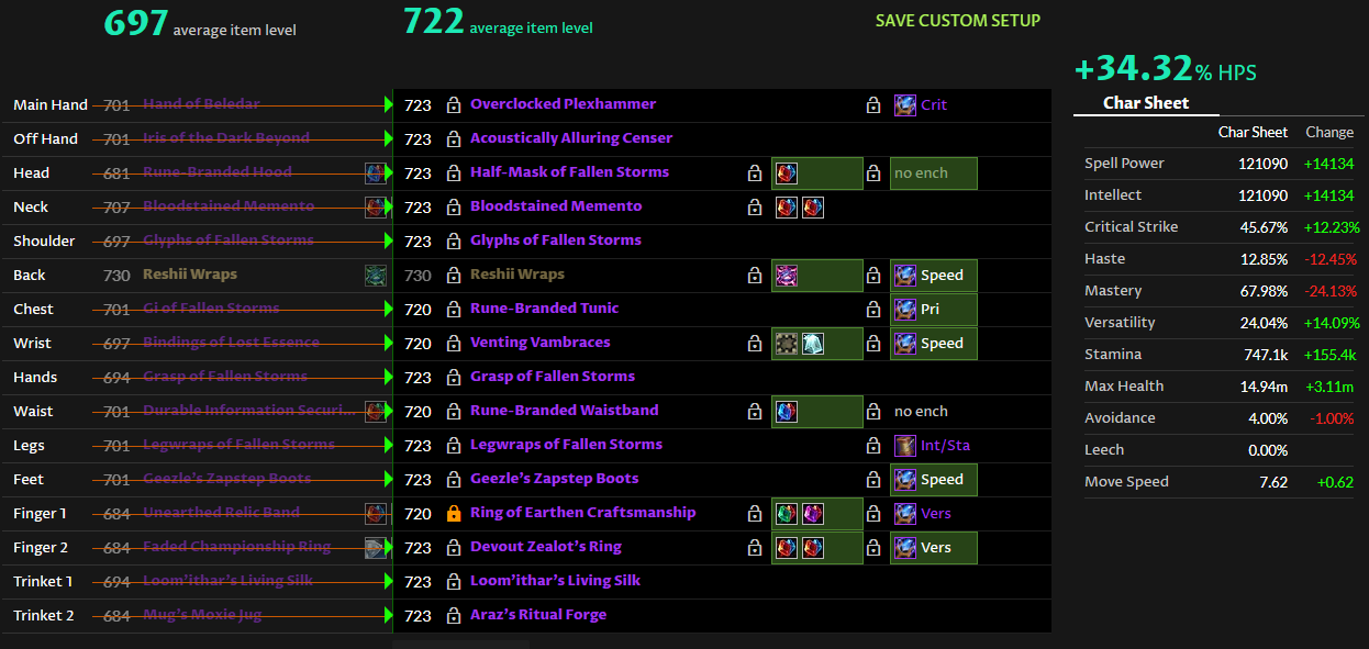 That said, I’ll see if we can tweak the logic that is being used to choose the crafted ring stat combos to try – I suppose a fallback would be to give Best in Slot a setting similar to the upgrade finder where a user could tell us their preferred crafted stat combo.