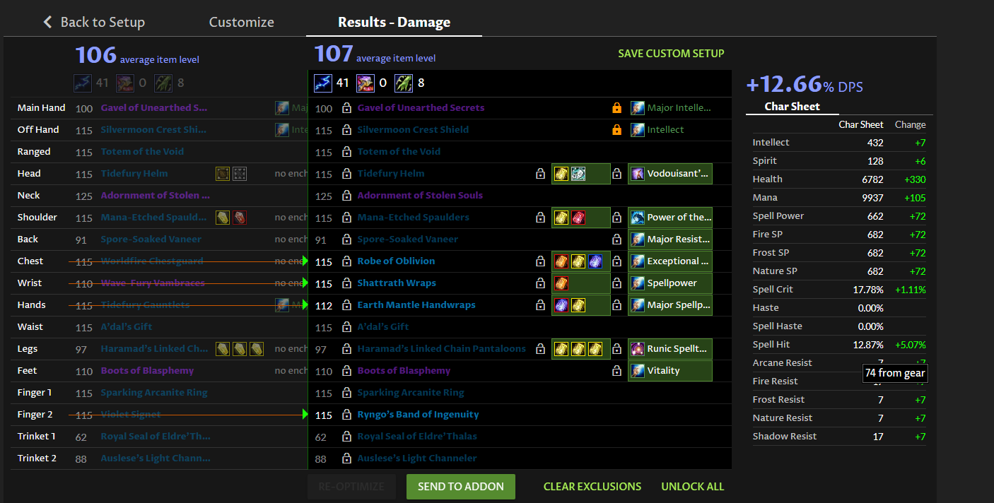 Beyond that – it just depends on what the optimizer is finding to be slightly better or worse depending on the gear available to you.