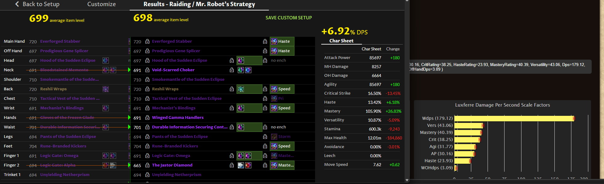 I’ve always enjoyed Ask Mr. Robot, but the sims for Sub Rogue are extremely wrong. It’s asking me to stack haste while I already have more haste than what everyone (and the top 50 sub rogues) have.