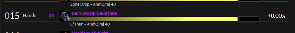 When looking at the upgrade finder, the “Dark Storm Gauntlets” from C’thun are showing as a 0% upgrade, even though they are better in pretty much every way from what I’m currently using: