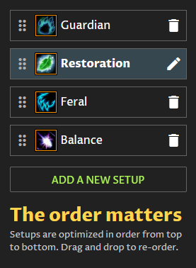 yes at the moment I play the specs in this order (Feral and Balance only for questing and old content). As I don’t know how the tool fully works I just found the recommendation strange, as I disabled everything except dungeons. If I disable “Set Bonus Prediction” the tier-set will not get listed.